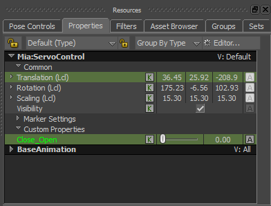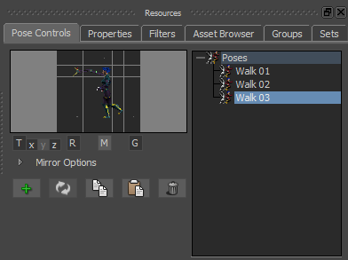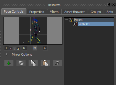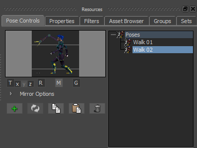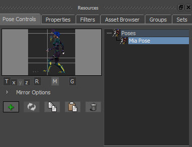 - In the Resources window, click the Pose Controls tab.