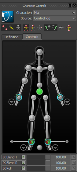 - In the Character Controls window, deselect the Right Shoulder effector and then Ctrl-click both wrist effectors.