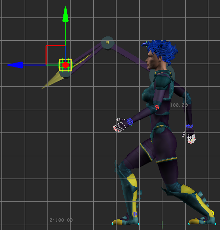 - Select the hips effector and translate in the Y-axis to bend her knees believably.