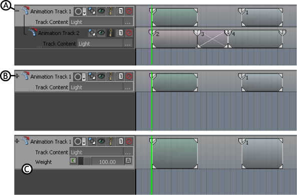 Tracks A. Collapse symbol B. Expand symbol C. Stretch track