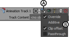 When you set a track to Override, you give the current track priority over any the tracks above it that have the same track content. The animation of any tracks above is disabled. For example, if the first track contains animation of a cube moving back and forth, and the track beneath contains animation of the same cube moving up and down, the first track’s animation does not play if you set the second track to Override.
