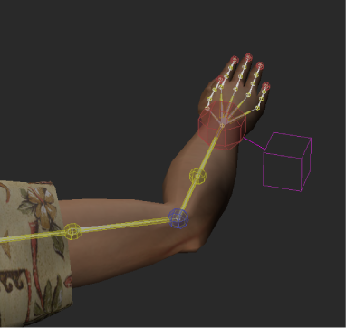 Auxiliary effectors are useful in many situations to provide an additional level of IK control. For example, you can use Auxiliary effectors to ensure that an arm in the character always reaches towards a prop, such as a weapon.