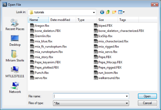 - Using the File browser, select the file containing the assets you want to load and click Open.