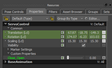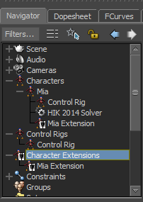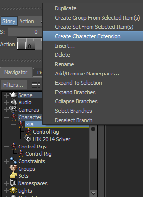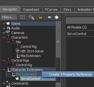 The ServoControl is defined as a Character Extension of Mia, and is considered as a new “body part” of the Mia character.