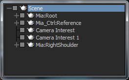 Mia’s right shoulder bone is now set as the Reference object for the Character Extension.
