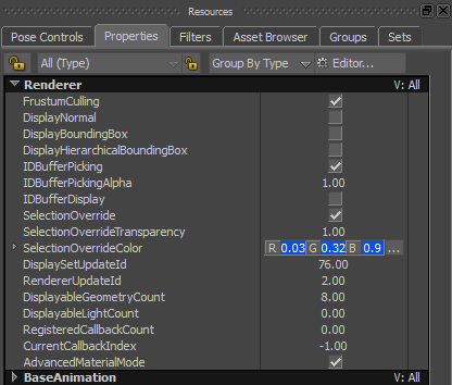 Define the selection override color in the SelectionOverrideColor property fields or button in the Renderer Properties Resources. |