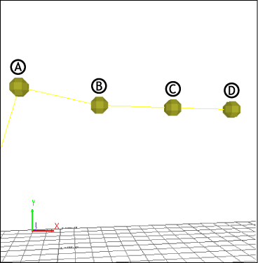 In the arm FK chain, rotation of the shoulder joint (A) is propagated down through the elbow (B) and wrist (C) to the hand (D). If only the elbow (B) is rotated, only the wrist (C) and hand (D) move, but not the shoulder (A). In other words, the joints in an FK chain have a parent-child relationship in which the child node (B) follows the behavior of the parent node (A). Usually, the animator must define these complex rules for all of the joint motions on a character, but in MotionBuilder, the work is done for you by the Control rig.