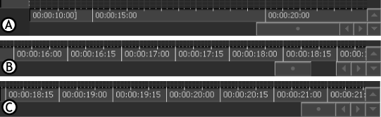 FCurve timeline A. Original timeline B. Scaled timeline C. Scrolled timeline