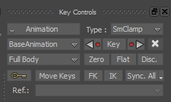 - In the Character Controls window, ensure no effectors are selected and that the Full Body keying mode is activated (