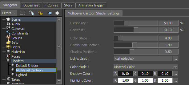 MultiLevel Cartoon Shader Settings
