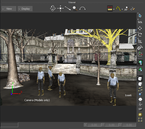 ), hover over an element such as a light in the scene and click the light, the cursor changes from a 2D cursor (