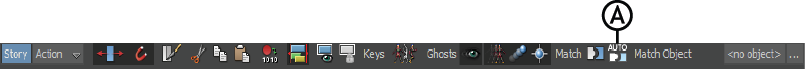 The Match Object field (A and B) lets you select a match object for each animation, character, or camera animation clip. The match object you select affects how clips match. By default, a clip has no match object and the travelling node is used to match clips.