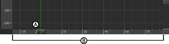 FCurves window A. FCurve Timeline indicator B. FCurve time axis