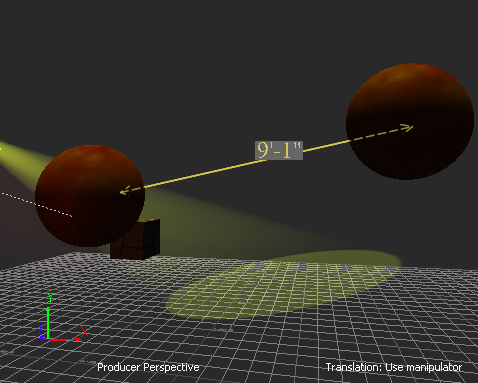 The system Ruler "object" is created and displays the distance between the two objects.