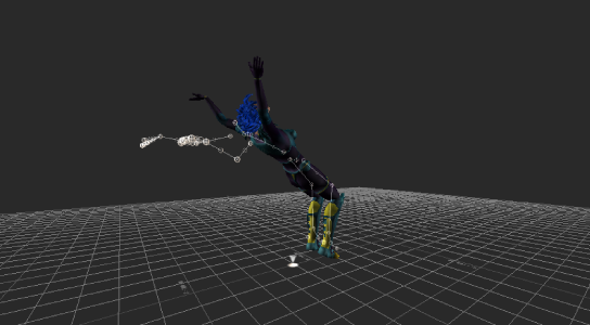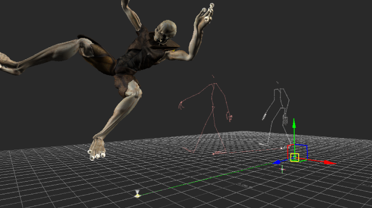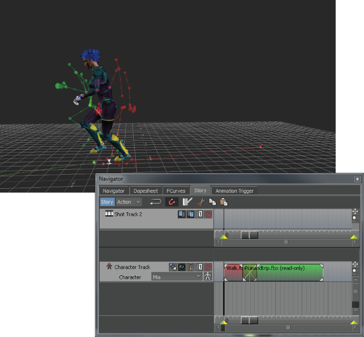 Ghosts are wireframe skeletons displayed in the Viewer window. When you play the animation, the ghosts enable you to see the animation of selected Story clips and tracks. You can use the ghosts of clips and tracks to change the location and orientation of animation.