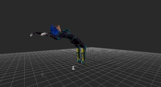 A Travelling ghost, also known as a Travelling node, is the ghost of the track content or part of the track content. The default travelling node differs depending on the type of track content. For example, a character’s default travelling node is its hips, but a cube’s default travelling node is the entire cube. Travelling ghost display as a gray triangle that follows the track contents along the clip trajectories in the Viewer window.