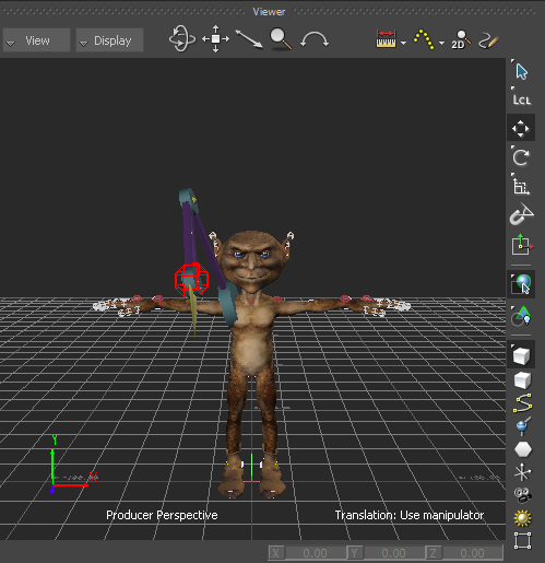 Because Mia’s Servo arm is parented to her right shoulder effector, the Servo arm is attached in the same way to the Gremlin character.