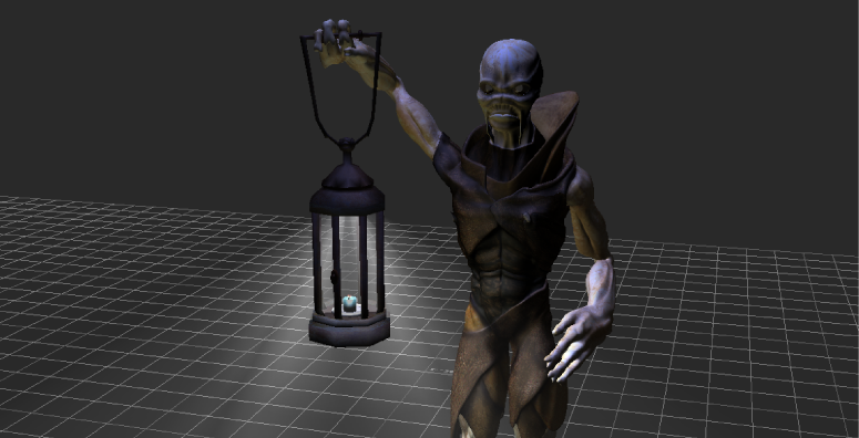 Constraints are tools used to create relationships between objects. You can use constraints to make a character pick up an object, have a camera follow a character, or use the keyboard or mouse to trigger events. For example, in the image below, a lantern is constrained to the character’s hand, so that however he moves his arm. the lantern follows.