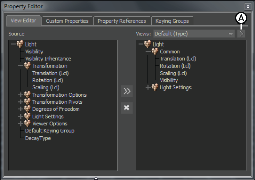 Property Editor A. View Options button