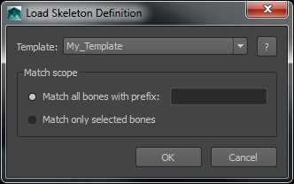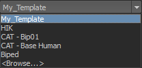 The Template menu options lists the skeleton definition templates you can choose from to match your bone naming convention.