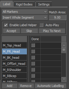 Setting a marker to Done indicates the data segment representing the marker is inactive in the Optical settings and active in the FCurves window for editing and filtering.