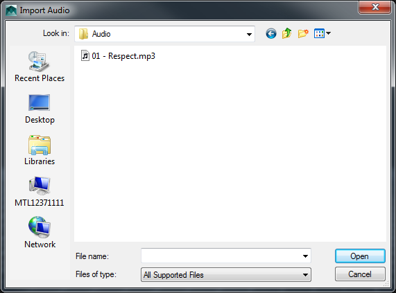 The Import Audio dialog appears.