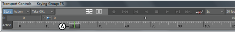 The Action timeline in the Transport Controls consists of the following: