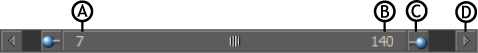 Zoom bar A. Zoom Start time code B. Zoom End time code C. Stretch handle D. Scroll button
