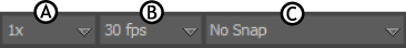 Timing Controls A. Play Speed menu B. Time Format menu C. Snap menu