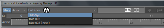 You can also use the Transport context menu to set the start and end time of the current take (Time menu), as well as use Start and End fields to set the looping area (see Stop or loop animation playback using time marks). See Story window time range for information on resizing the take in the Story window.