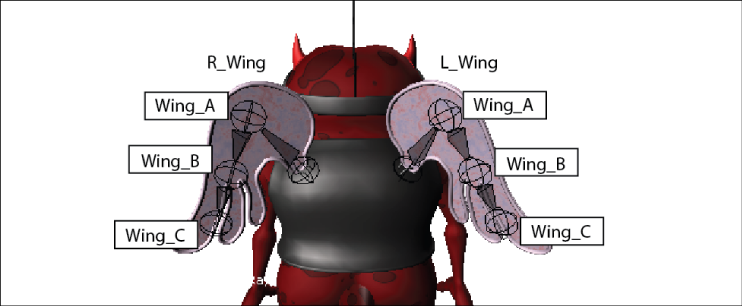 Character with two wings set up for symmetrical mirroring
