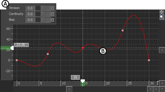 TCB interpolation joins each keyframe using a Hermite-type curve. The slope on either side of a keyframe is changed using the TCB (Tension/Continuity/Bias) values.