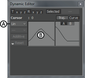 Dynamic Editor A. Linear interpolation mode selected B. Linear interpolation displayed