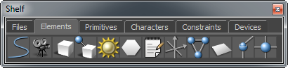 To access the Shelf tool, choose Open Reality > Tools > Shelf from the MotionBuilder main menu.