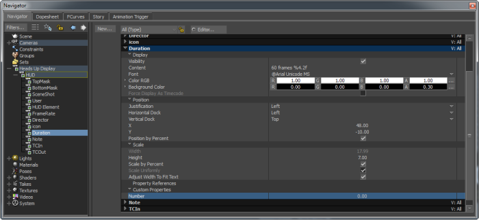 Duration HUD element properties.