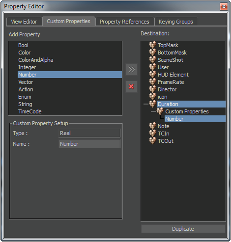 You can customize the HUD element properties by adding a custom property from the Property Editor > Custom Properties window. This helps to display more information in the Viewer.