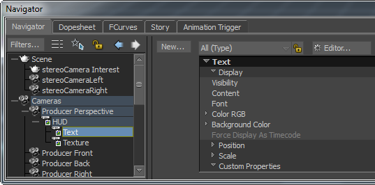 - From the Text HUD element properties, change the value of Y property to position of the text (Camera FOV) at the top of the stereo camera.