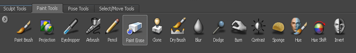 Paint is erased in the areas you stroke. Adjust the Radius, Strength, and Falloff for the Paint Erase tool as necessary.