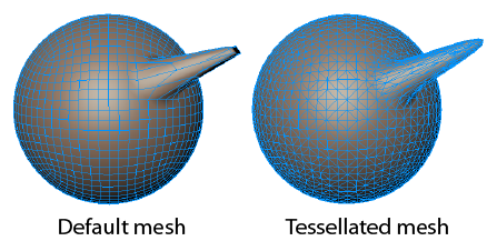 Increases the resolution of the model by subdividing each polygonal face into four smaller faces. As a result, the number of faces quadruples each time you subdivide. See Mesh resolution and subdivision levels and Add a subdivision level.