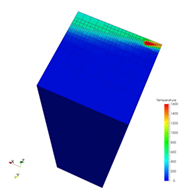 The effect of using *ADPM is shown in the figures below, along with the associated single CPU run times. Without using *ADPM, the mesh has excessive resolution to resolve the problem. Using the default value of 50 reduces simulation time by 82%. Changing the value of *ADPM to 100 generates a further reduction of run time of 31% over the default value. A similar reduction of time is achieved by using *ADPM of 1000, but note in the fourth figure that thermal aberrations occur. These are due to the improper integration of heat over the part.