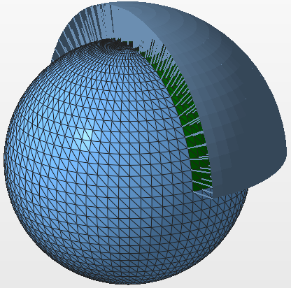 Initially, the surface is extruded a distance of 1 mm normal to the surface. The extruded surface is colored gray.