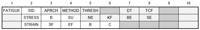 | APRCH | Fatigue life approach, one of the following character variables: STRESS, STRAIN, or blank. | Character | See Remark 2 | |||