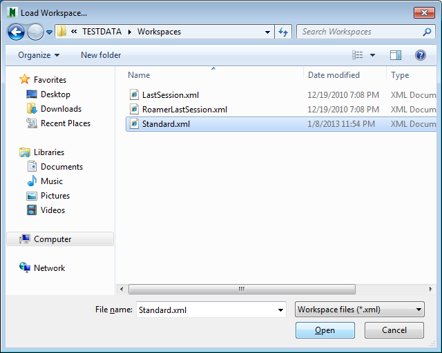 To Load a Saved Workspace