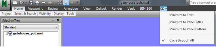 - Minimize to Panel Buttons: Minimizes the ribbon so that only tab titles and panel buttons are displayed.