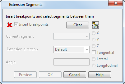 Current Segment — Select a segment from the list or click a segment on the model in the graphics window. The segment is highlighted in the model and has an arrow in it giving the default direction of the extension.