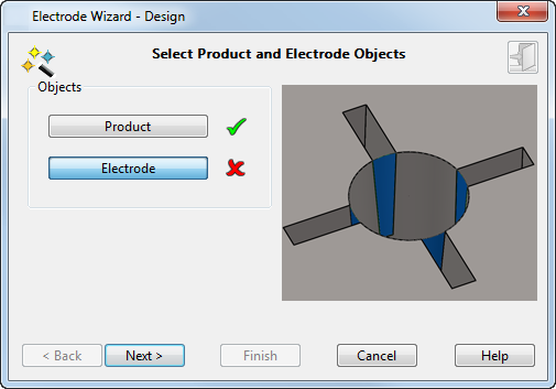 Electrode creates the electrode. You can also select a pre-modelled electrode object or any surfaces created to aid electrode design.