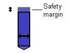 The safety margin is added to the start of each hole automatically. If the hole cuts straight through the mold plate, the safety margin is also added to the end of the hole.