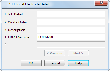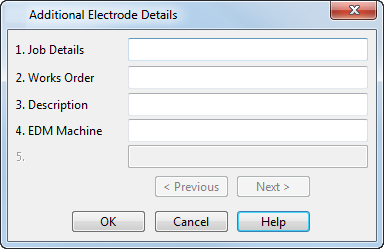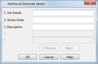 You can also add Additional Electrode Details fields, and configure the way in which Job Details, Works Order, and Description work, using the electrode_additional_details.con file.