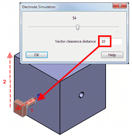 The simulation of the electrode burning motion reflects the Extraction Vector you specified on the first page of the wizard.