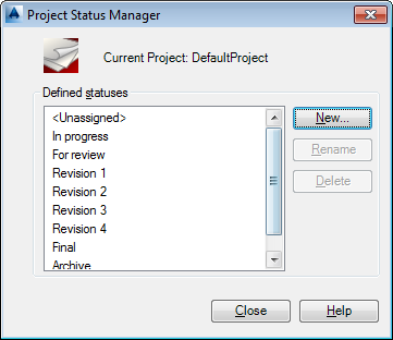 Lists the statuses that have been defined for the current project. You can add, rename, and remove statuses from this list in this dialog box. The default status list includes the following: